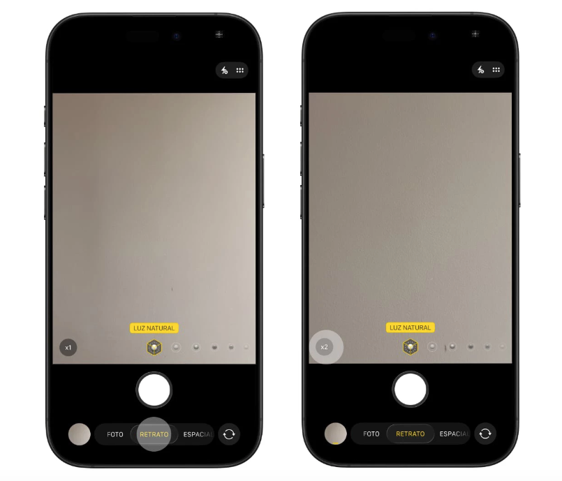 Lo primero es abrir la cámara y deslizar directamente al Modo Retrato. Vamos a centrarnos en utilizar la cámara trasera y un zoom para darnos un aspecto más profesional. Por eso te recomiendo tocar el botón x2 o x3, dependiendo del modelo de iPhone.